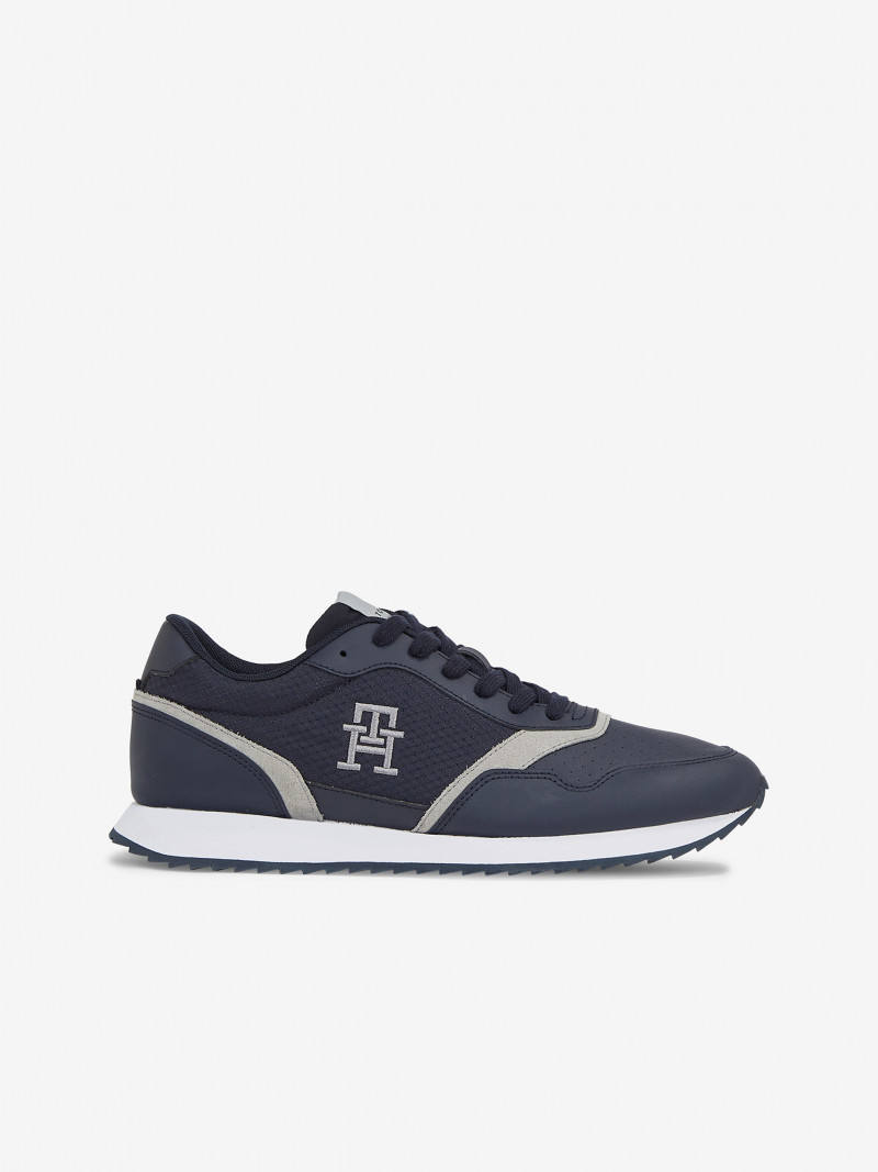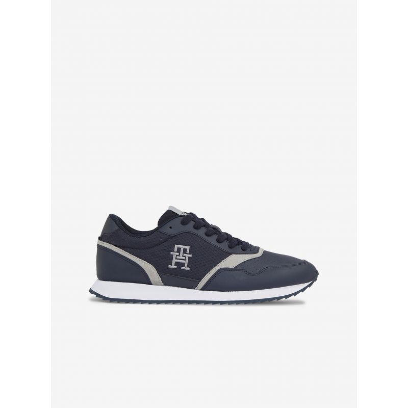 Tmavě modré pánské kožené tenisky Tommy Hilfiger Runner Evo Mix