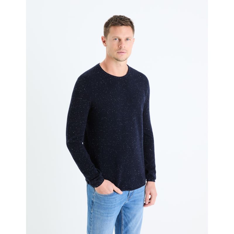 Bavlněný svetr s drobným melírem. Svetr mám kulatý výstřih a dlouhé rukávy. Rovný a volný střih.
