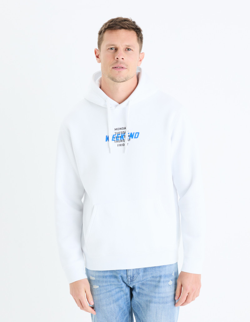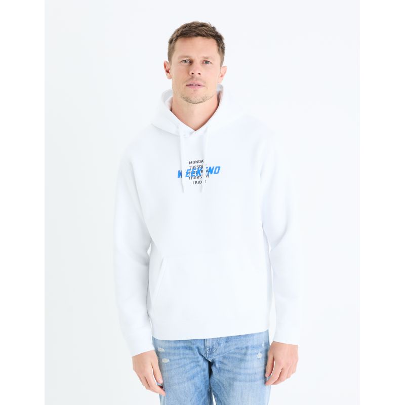 Příjemná mikina s kapucí a drobným nápisem na přední straně. Kapuce se stahovací šňůrkou. Dlouhé rukávy a pružné náplety. Prostorná klokaní kapsa.
