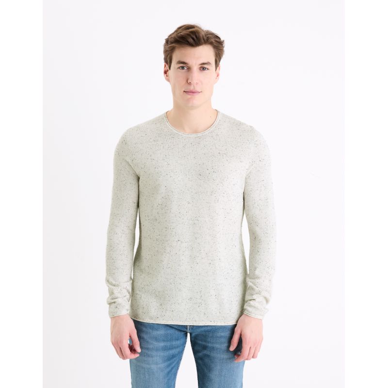 Bavlněný svetr s drobným melírem. Svetr mám kulatý výstřih a dlouhé rukávy. Rovný a volný střih.