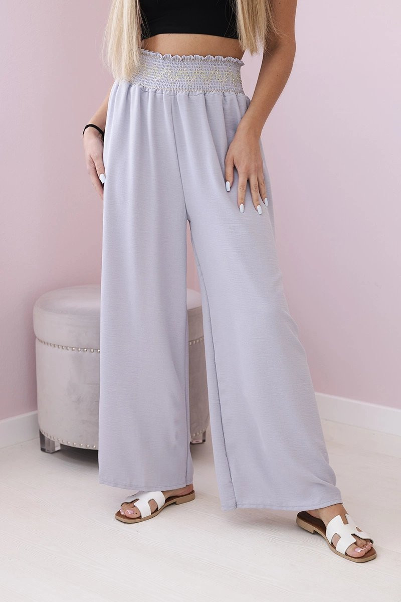 Kalhoty se širokým elastickým pasem jsou praktickou a pohodlnou volbou pro každodenní nošení. Díky širokému elastickému pasu zajišťují dokonalé padnutí a pohodlí při nošení. Ideální pro relaxační procházky, domácí práce nebo příležitostná setkání s přáteli. Skvěle kombinují pohodlí s módním stylem a široká guma dodává originalitu a lehkost. Tyto kalhoty se rychle stanou oblíbeným kouskem vašeho šatníku a umožní vám užívat si pohodlí po celý den. Velikost je univerzální a bude vhodná pro ženy, které nosí velikost S, M nebo L.