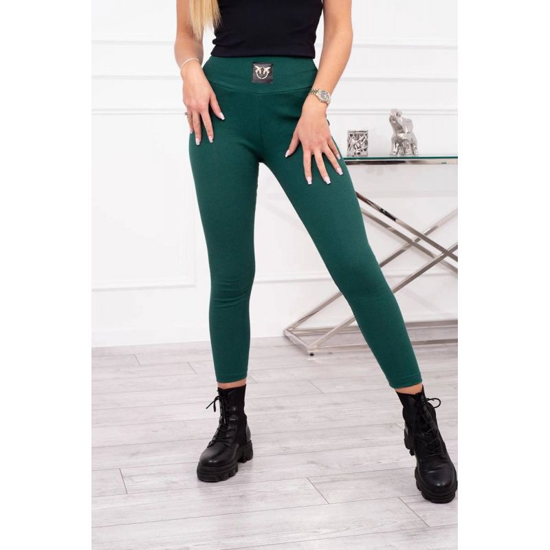 Žebrované legíny s vysokým pasem tmavě zelené barvy