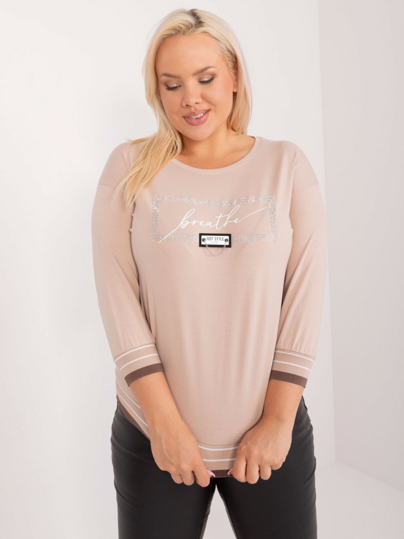 Modelka má na sobě univerzální velikost. Rozměry modelky: výška 172 cm, prsa 103 cm, pas 73 cm, boky 103 cm.   Rozměry halenky jedné velikosti měřeny naplocho: šířka v podpaží - 56 cm, délka rukávu - 42 cm, celková délka - 64 cm.