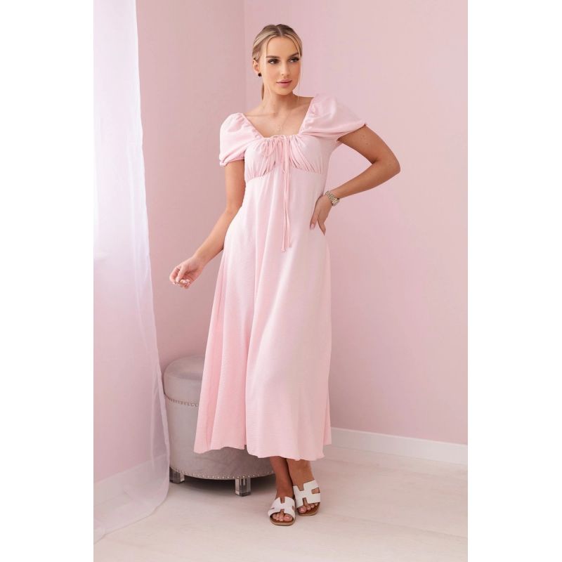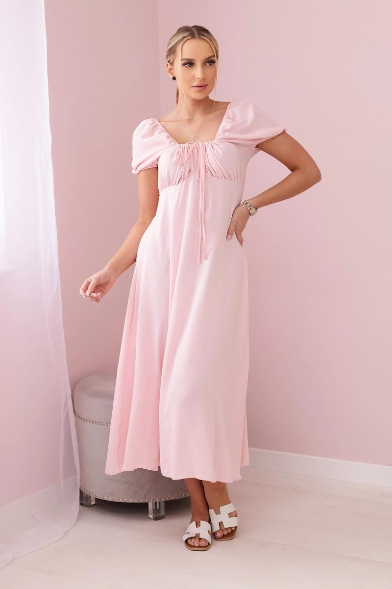 Dámské šaty se zavazováním u výstřihu - pudrově růžová