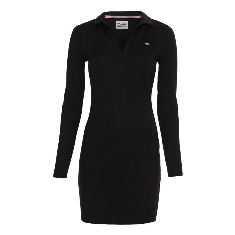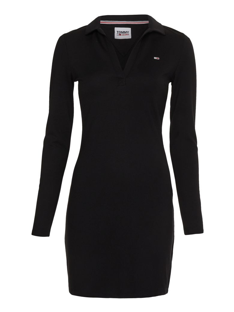 Tommy Jeans Dress - TJW LS SLIM V-NECK POLO DRESS black