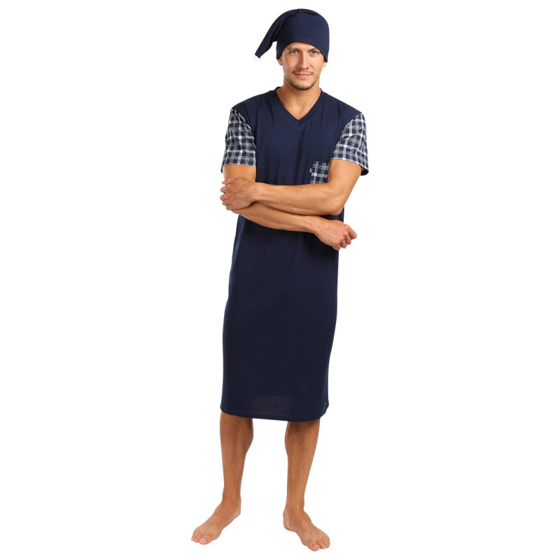 Pánská noční košile Foltýn Chcete mít pocit svobody při spánku? Pak je tato pánská noční košile Foltýn tou pravou volbou. Košile má krátký rukáv a pohodlný střih. Vyrobena je ze 100% bavlny. Součástí je i spací čepička. Více se dozvíte níže v klasických informacích o produktu.Tabulka velikostí