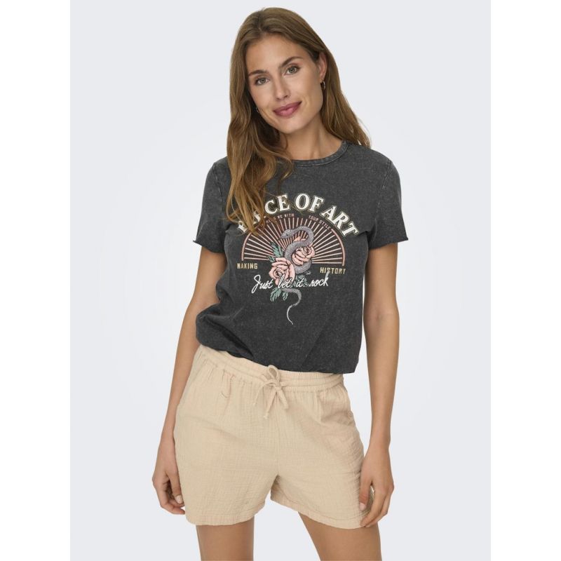 Model: Lucy Barva: černá Vzor: s potiskem Střih: regular fit Výstřih: kulatý Rukáv: krátký Materiál: 100 % bavlna