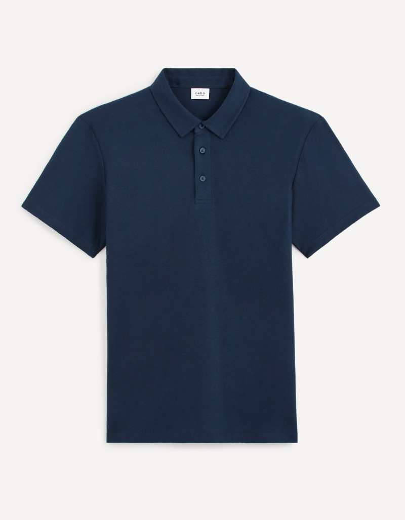 Jednobarevné modré polo tričko ze 100% bavlny. Krátký rukáv a rovný střih. Měkký límeček se zapínáním na 3 knoflíčky.